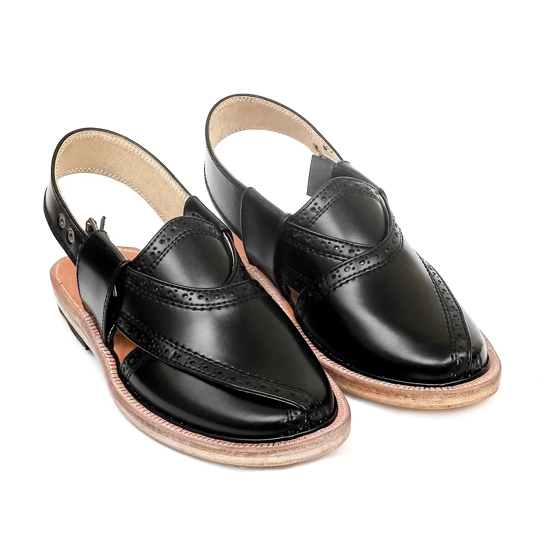 Black Brock Leather Quetta Norozi Chappal with Round Shape – 09221