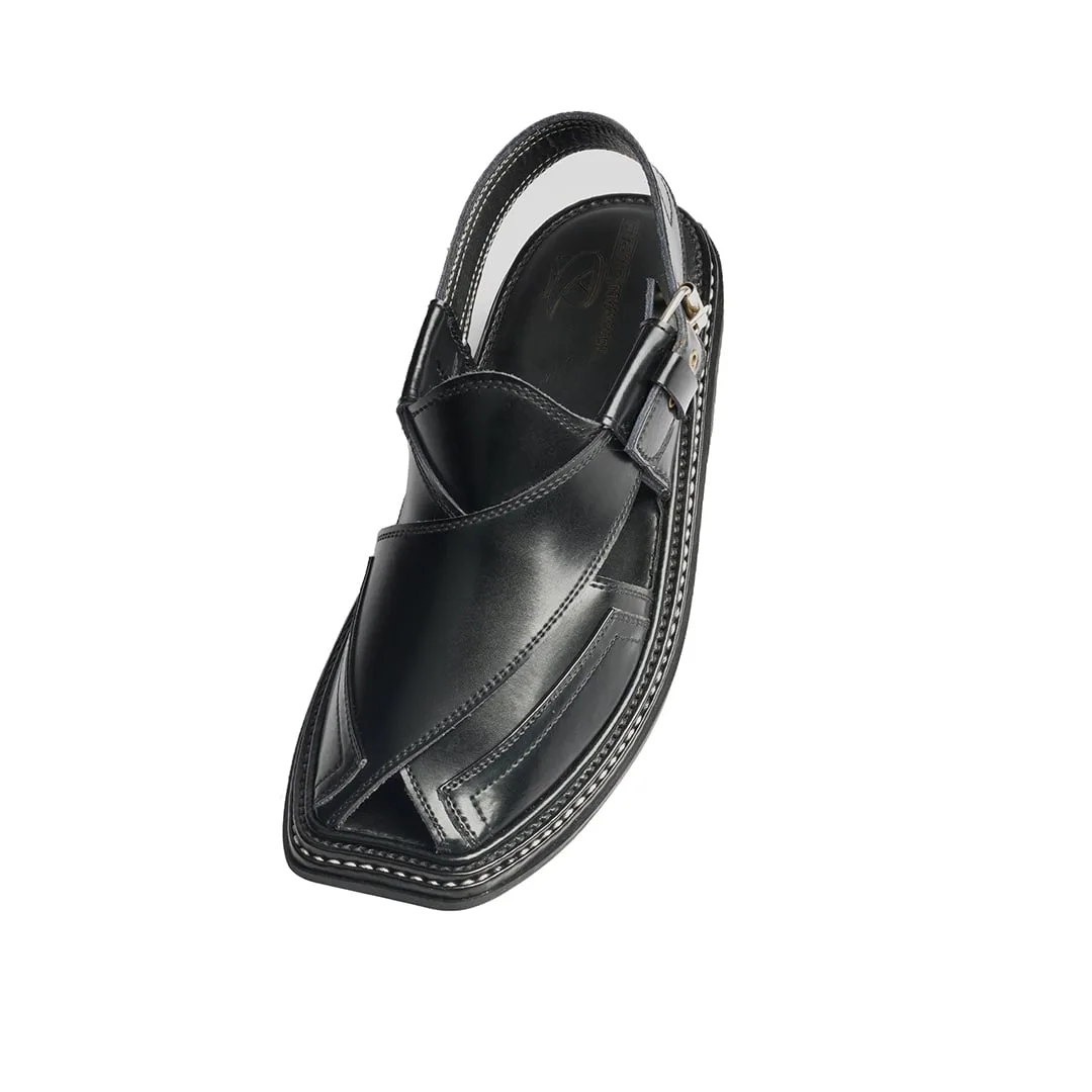 Black Peshawari Chappal With Triple Gear – 092115