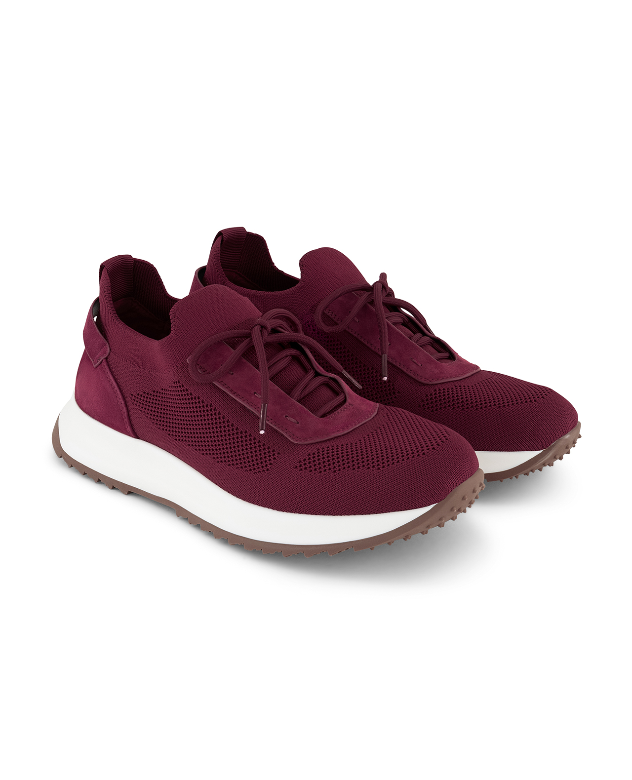 Our ladies’ sneakers blend elegance with modern comfort. Crafted from lightweight, stretch fleece knit with micro-perforations, they offer breathability and a sleek, compact profile. The technical mesh upper is accented with suede leather details on the front and back, while the heel proudly features the Albidaa signature. Designed for all-day wear, these sneakers incorporate advanced Air Cushioning technology for exceptional support, making them the perfect finishing touch to any relaxed outfit, any time of year. Italian assembly Description: Linning: Fleece and suede leather Insole: Microfiber leather With Laces Signature engraving on the outsole heel. Burgundy Colour Shoes Size US UK EUR 4 3.5 36 4.5 4 37 5.5 5 38 6 5.5 39 7 6.5 40 8 7 41
