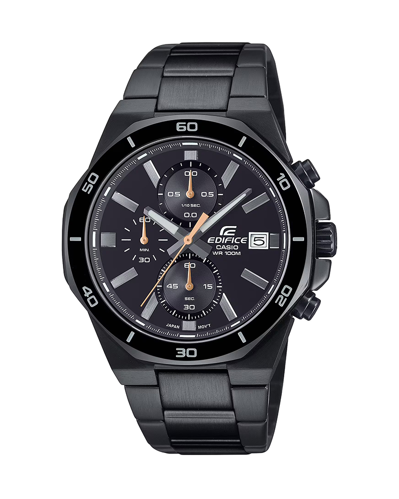 Casio Edifice Standard Mens Black Ion Plated Stainless Steel Case Round Analog Date Chronograph Multi-Function Black Ion Plated Stainless Steel Bracelet Watch