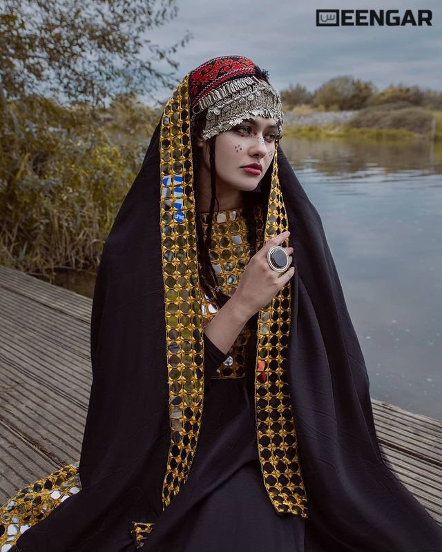You’ll feel just as beautiful with this sleek black dress that’s perfect for the night. The charcoal black color blends well with the mirror’s gold-yellow stripes and makes it easy to see yourself from whichever angle you want. The dress is available in other colors as well, please confirm via whatsapp before order. If you want to buy the matching jewelry you can find it in our Afghan Jewelry Collection. Parcel Includes: Shirt/Kameez Dupatta/Shawl Pant/Shalwar
