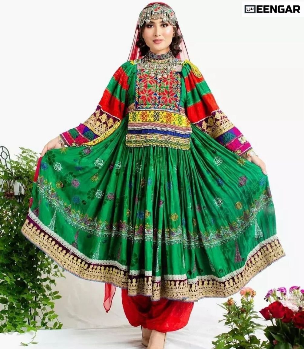 Adorned with intricate floral patterns meticulously handwoven into the fabric, the ‘Floral Fusion Afghan Dress’ element of this Afghan vintage dress is a harmonious blend of artistic craftsmanship and timeless beauty. Each bloom, meticulously stitched with vibrant threads, tells a story of tradition and culture, capturing the essence of Afghan heritage. This exquisite floral motif graces the front of the dress, breathing life into its emerald canvas and infusing it with a delicate allure that’s as captivating as the gardens of Kabul. This dress is a testament to the skillful hands that created it, celebrating the rich tapestry of Afghan artistry and history. Box Included: Pant (Shalwar) Shirt (Kamees) Dupatta
