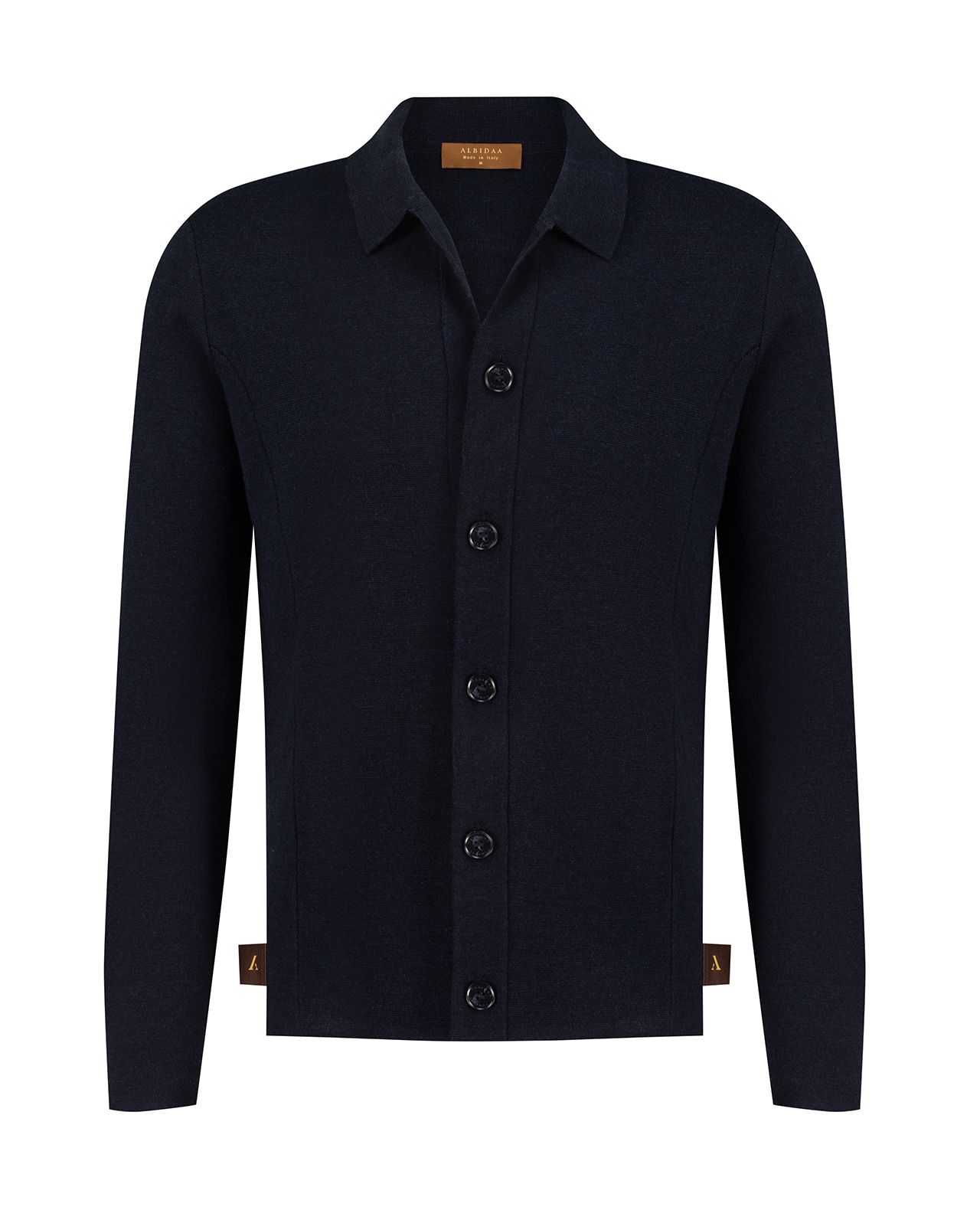 Crafted from 100% Australian Merino wool, this elegant cardigan combines premium quality with a classic design. Featuring ‘A’ suede strips along the hem and additional suede detailing on the collar, it delivers a sophisticated finish. Made in Italy, this piece enhances body silhouettes beautifully, making it a versatile and stylish choice for cooler seasons. Description: Fabric: 100% Australian Merino Wool With ‘A’ suede strips on both hem and on collar Made in Italy Colour – Navy Size Conversion in S M L XL XXL XXXL AU/NZ 10 12 14 16 18 20 UK 10 12 14 16 18 20 EU 34 36 38 40 42 44 US 6 8 10 12 14 16 Care instructions 30℃ cold gentle machine wash Delicate dry cleaning Do not bleach Iron on low heat (maximum 110℃) Do not tumble dry Wash with similar colors This product is under the supervision of AMA