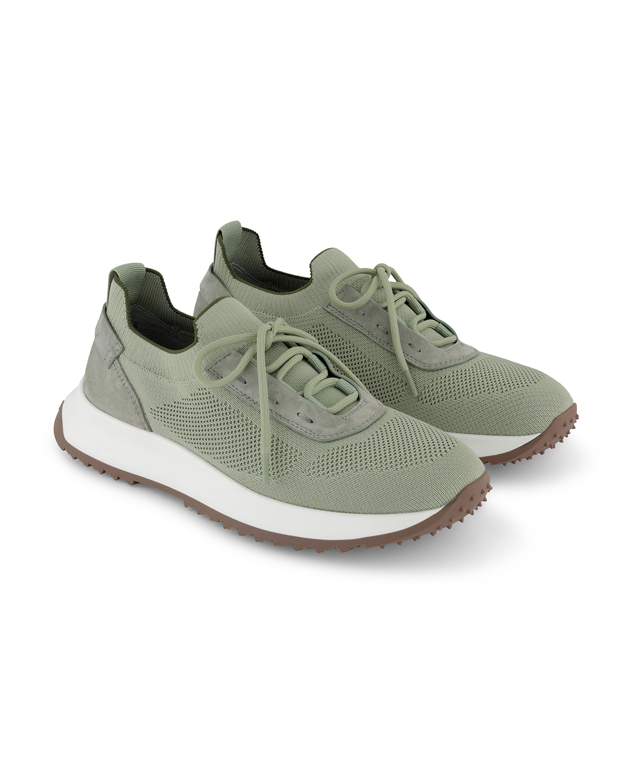 Our ladies’ sneakers blend elegance with modern comfort. Crafted from lightweight, stretch fleece knit with micro-perforations, they offer breathability and a sleek, compact profile. The technical mesh upper is accented with suede leather details on the front and back, while the heel proudly features the Albidaa signature. Designed for all-day wear, these sneakers incorporate advanced Air Cushioning technology for exceptional support, making them the perfect finishing touch to any relaxed outfit, any time of year. Italian assembly Description: Linning: Fleece and suede leather Insole: Microfiber leather With Laces Signature engraving on the outsole heel. Sage Green Colour Shoes Size US UK EUR 4 3.5 36 4.5 4 37 5.5 5 38 6 5.5 39 7 6.5 40 8 7 41