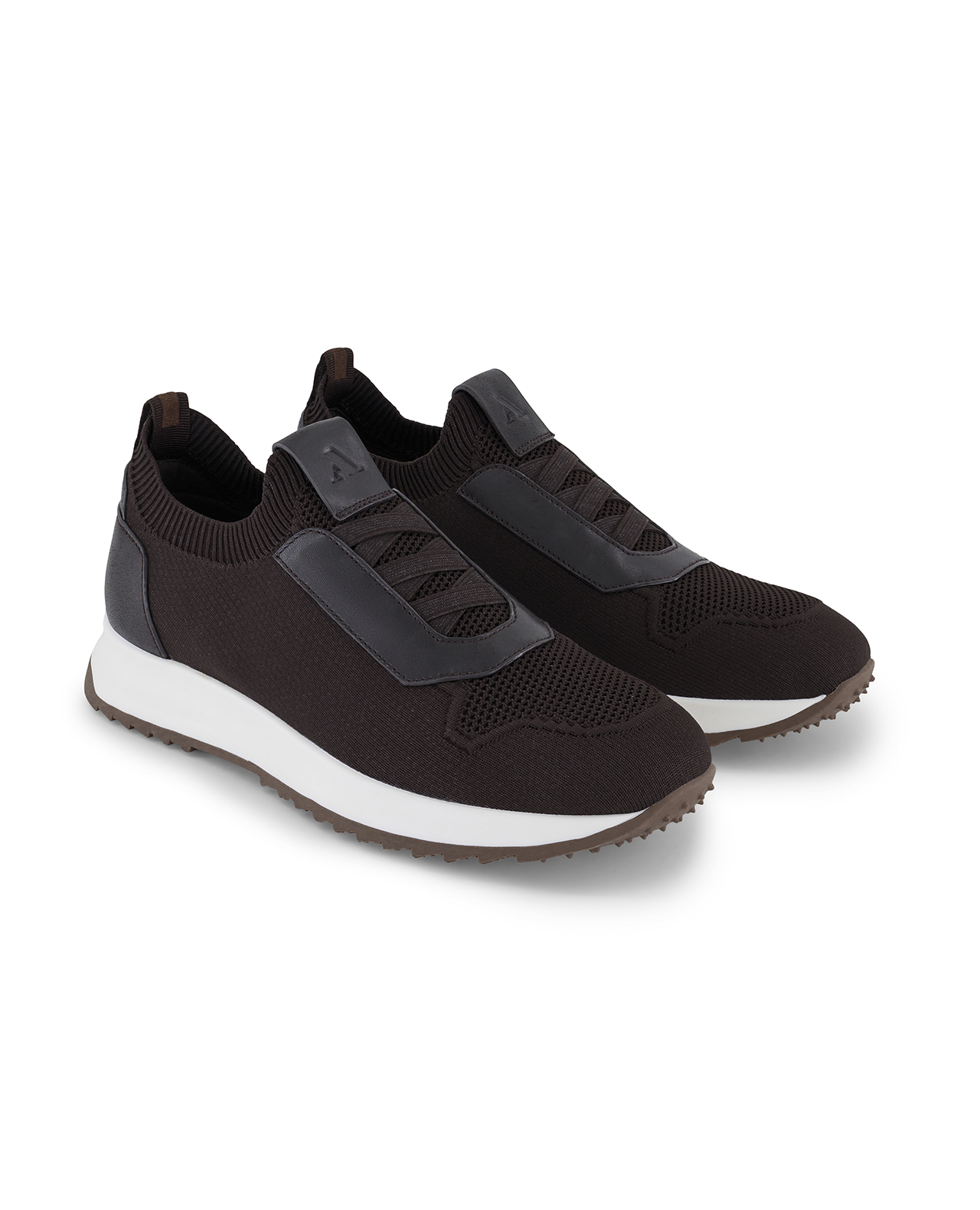 Designed for convenience and style, our Slip-On Sneakers feature the innovative Outrigger Lacing system, allowing for an effortless slip-on experience while ensuring a secure and comfortable fit. The lightweight, stretch fleece knit upper molds to your foot, providing flexibility and breathability, while micro-perforations on the toe add a sporty touch and enhance airflow. Crafted in collaboration with Italian shoe experts, these sneakers prioritise both form and function. Equipped with Air Cushioning technology, they offer superior foot support, reducing shock and pressure for all-day comfort. Premium leather details on the back heel and an engraved “A” logo on the tongue add a refined, modern finish. Built from high-quality materials, these sneakers combine durability, flexibility, and breathability, making them the perfect companion for everyday wear. Italian assembly Description: Linning: Fleece and leather Insole: Microfiber leather Outrigger Lacing system Signature engraving on the outsole heel. Dark Brown Colour Assembled in Italy Shoes Size US UK EUR 4 3.5 36 4.5 4 37 5.5 5 38 6 5.5 39 7 6.5 40 8 7 41 8.5 8 42 9.5 9 43 10 9.5 44 11 10.5 45 12 11 46 12.5 12 47 13 12.5 48