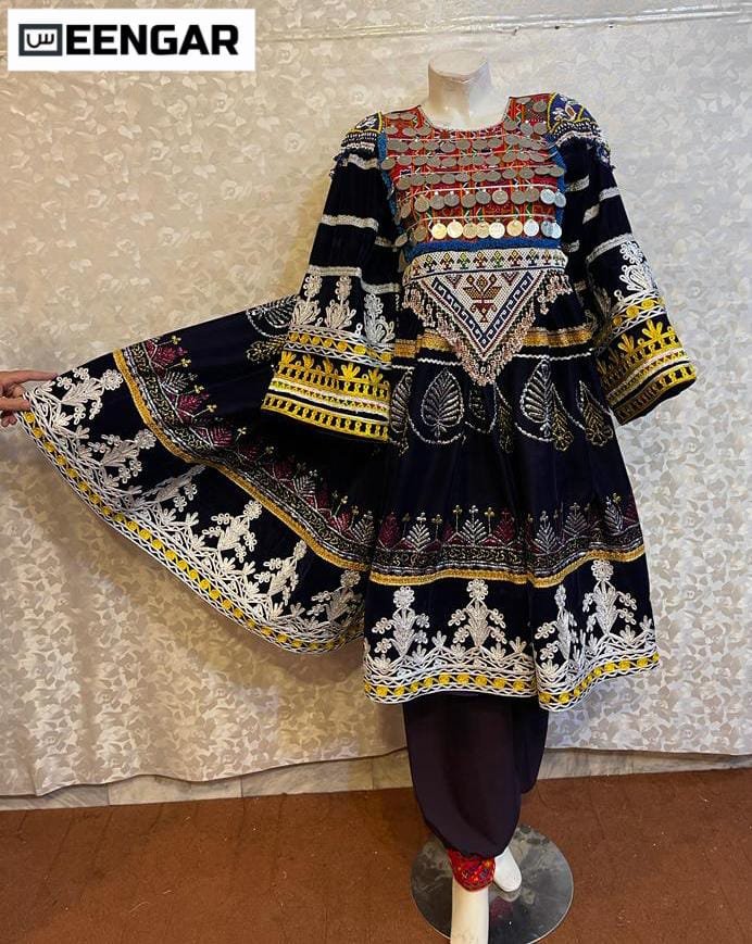 Introducing the “Velvet Rosewood Afghan Charm,” a three-piece ensemble of timeless allure. The magenta velvet gown, adorned with vintage almond-style embroidery, drapes gracefully, exuding regality. Paired with comfortable trousers and a dupatta featuring matching embroidery, this ensemble seamlessly fuses tradition with elegance. Step into cultural pride and enduring style with this captivating Afghan dress. Box Included: Pant (Shalwar) Shirt (Kamees) Dupatta