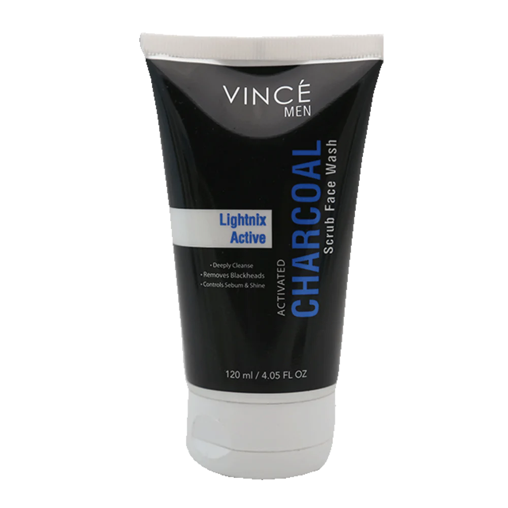Details: Activated Charcoal Scrub Face Wash for Men Vince Lightnix Activated Charcoal Scrub Face Wash is a scrub used for exfoliation.