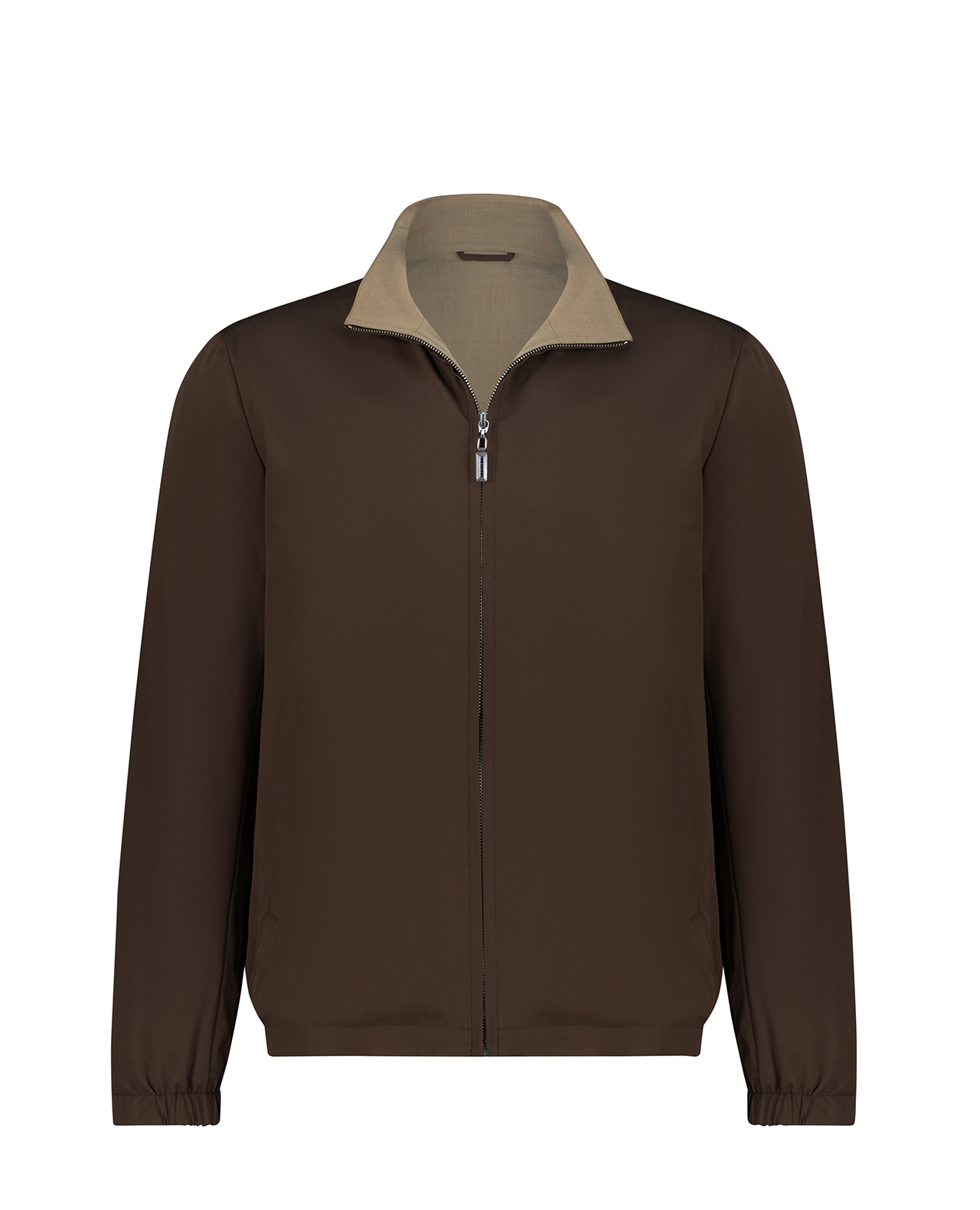Our windbreaker jackets are a blend of simplicity and functionality. Lightweight and chic in design, they feature a windproof outer fabric that shields you, while the soft wool-modal inner lining keeps you warm and cozy. Ideal for layering, these jackets are a must-have for staying stylishly protected in cooler weather. Description: Colour: Brown & beige Outer fabric: 100% Polyester windproof fabric Inner fabric: 30% Wool, 50% Polyester, 20 % Modal Made in Italy Care Instructions: Hand wash Do not bleach Do not tumble dry Cool ironing Dry Flat
